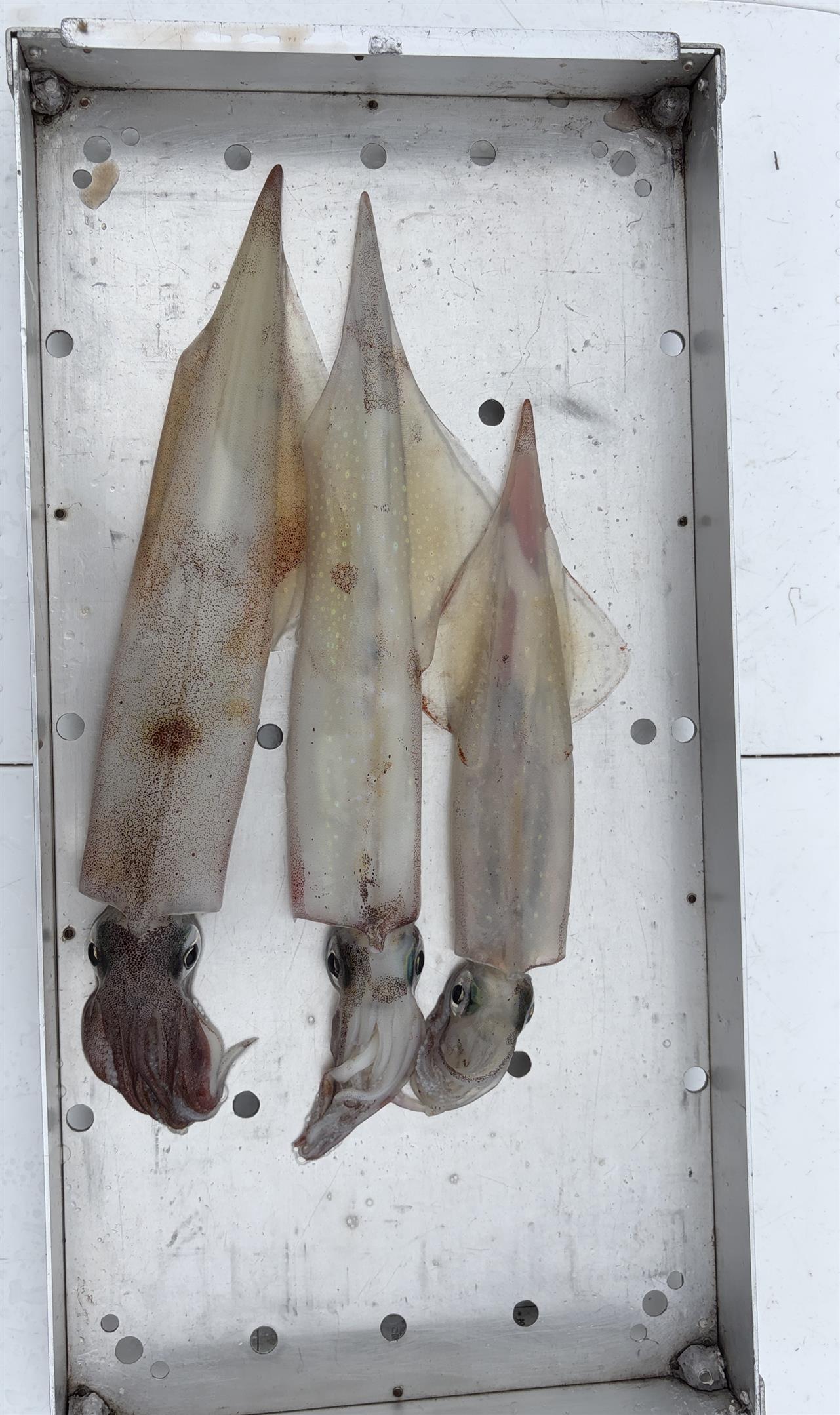 ベタ底の反応しか無く、イカのノリは全体的に悪かった感じで ほとんど1杯づつしか乗らなかった様でした 途中で風が結構強く成り少し早上がりとなりました、トップの方で30杯ほどだったそうです😿