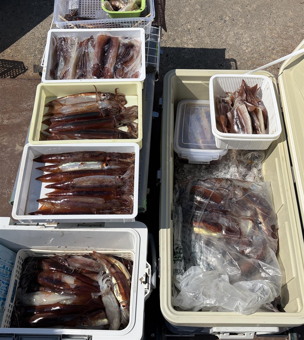 反応が薄くてもノリが良い時間が有り🤗 多い方と少ない方大分差が出ました大きいサイズもいるのですが場所が違うと花見イカサイズもノリました多い方は80杯ほどだったそうです