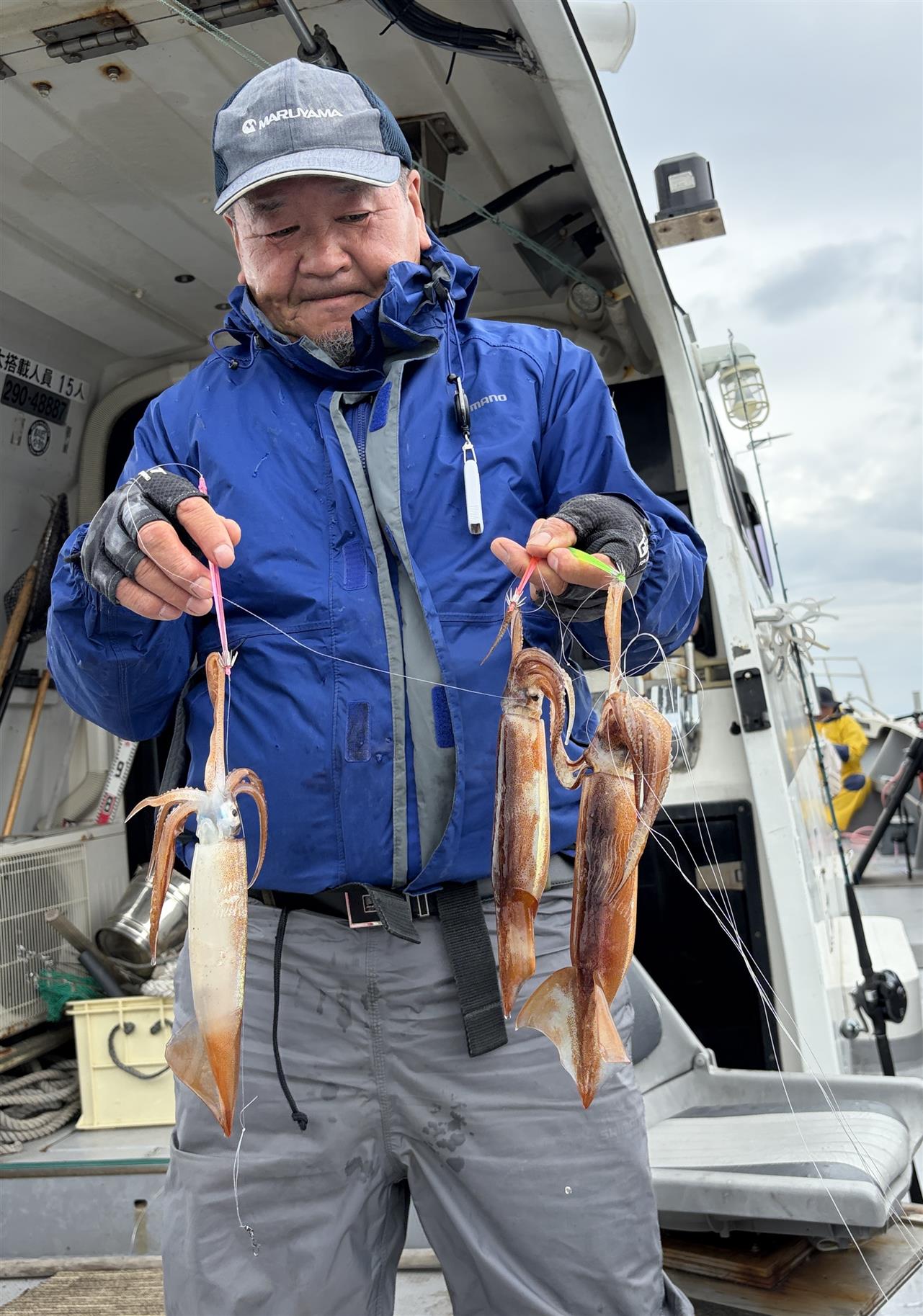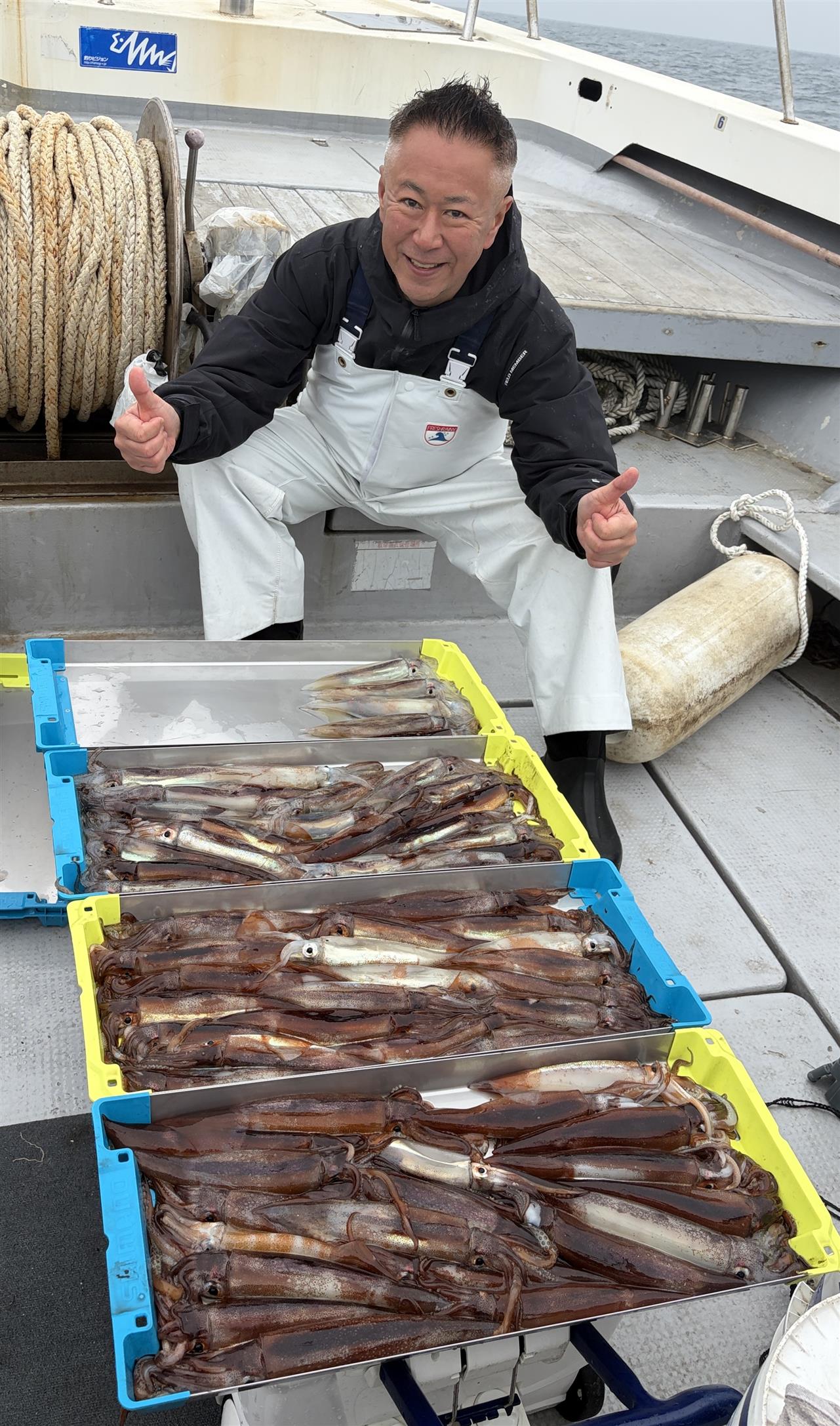 1投目から調子良かった😃⤴のですが ちょっとしたトラブル発生1度港に帰港(/。\)気を取り直し再出港 反応は大分薄くなっていましたが 多い方で80杯後は50~60杯でした、本日は有り難う御座いました。