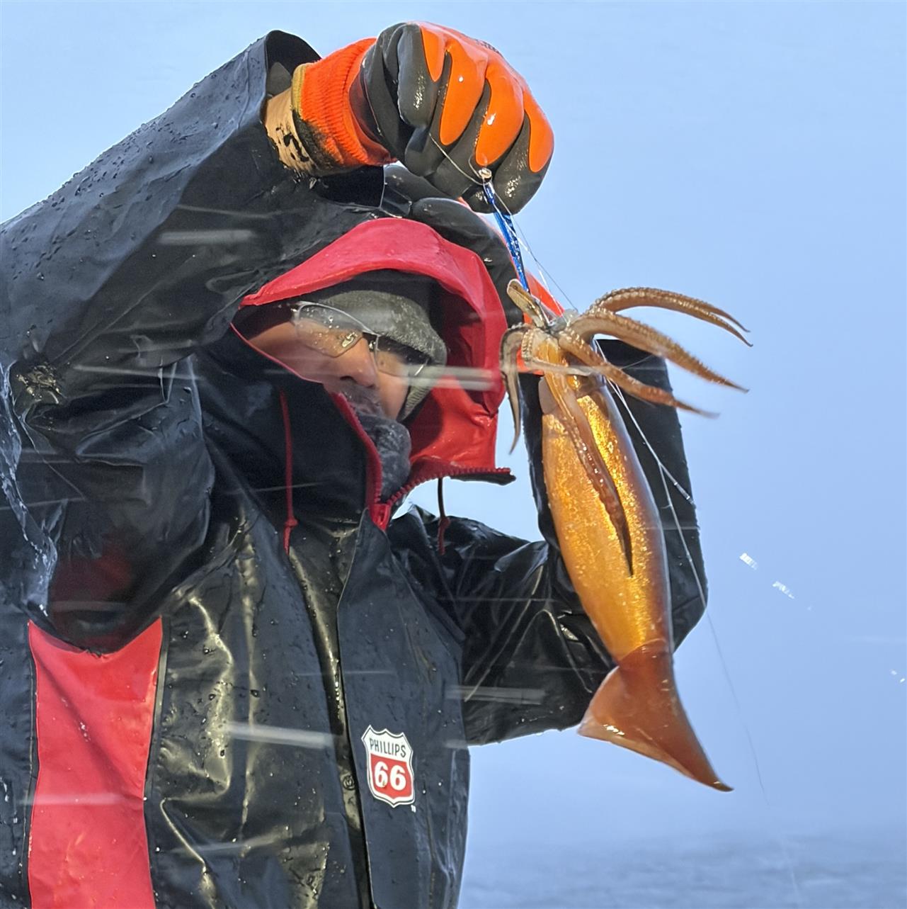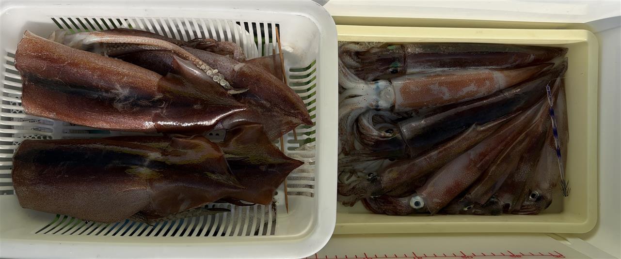 ベタ底の反応しか無く、イカのノリは全体的に悪かった感じで ほとんど1杯づつしか乗らなかった様でした 途中で風が結構強く成り少し早上がりとなりました、トップの方で30杯ほどだったそうです😿
