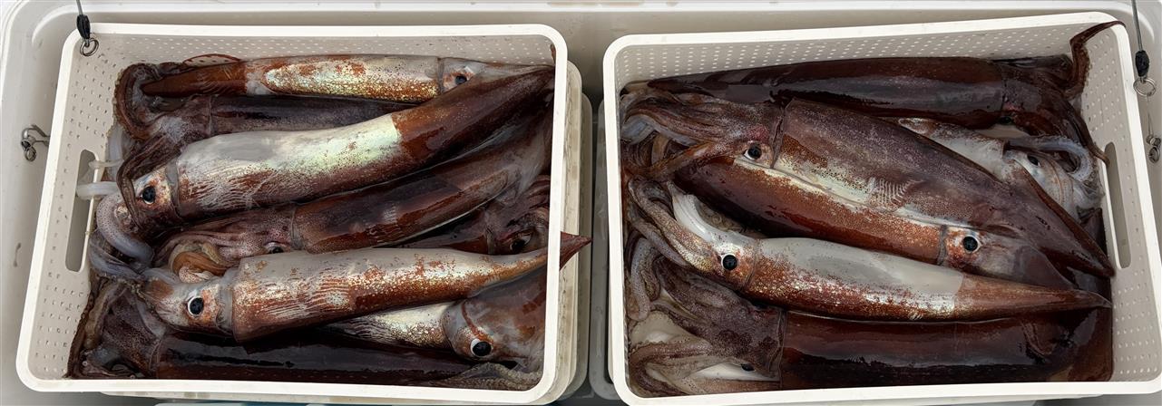 1投目から調子良かった😃⤴のですが ちょっとしたトラブル発生1度港に帰港(/。\)気を取り直し再出港 反応は大分薄くなっていましたが 多い方で80杯後は50~60杯でした、本日は有り難う御座いました。